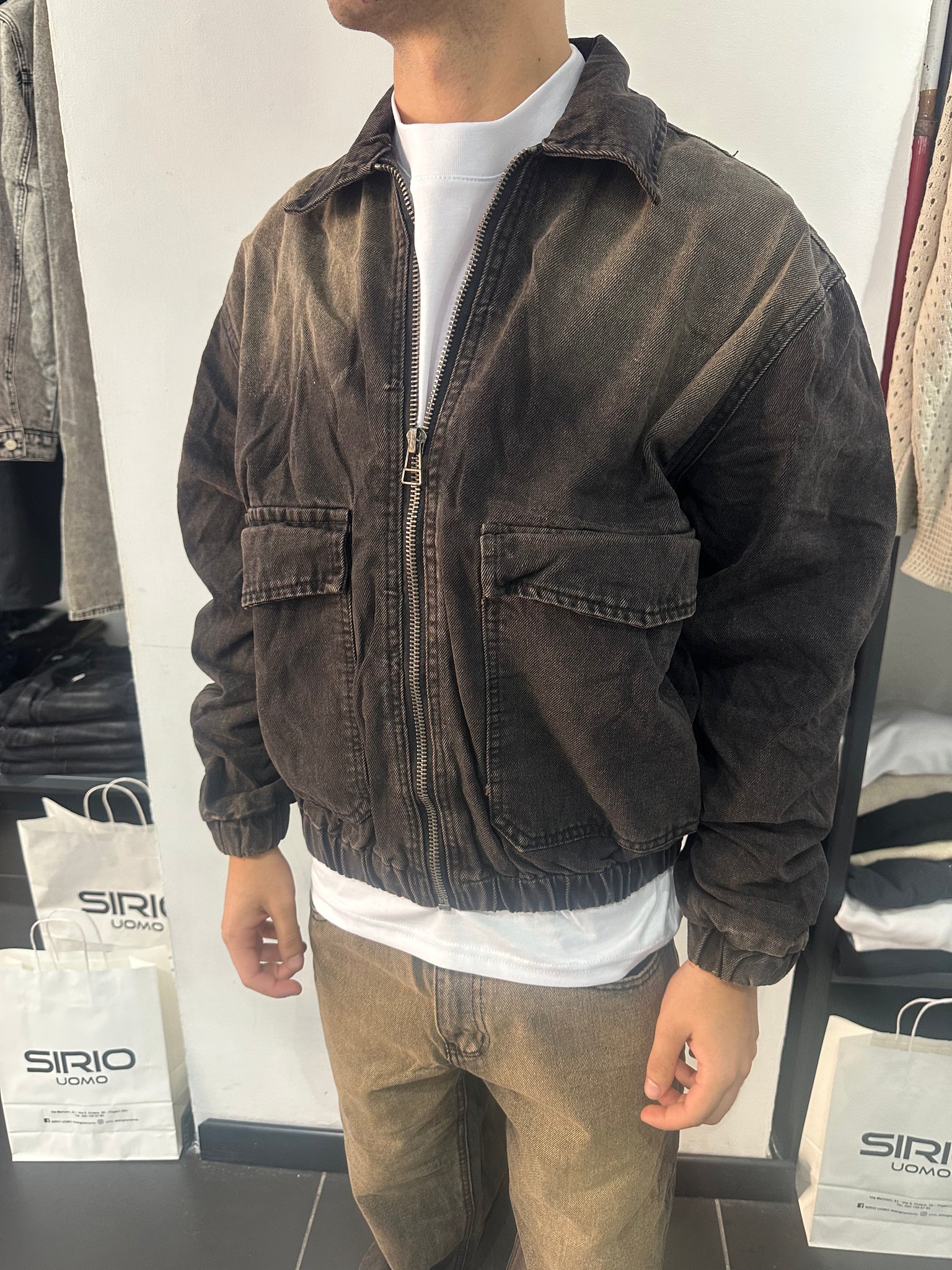 - GIACCA CON CHIUSURA A ZIP E MOLLA PRESENTE SULLA VITA E CON TASCONI LATERALI